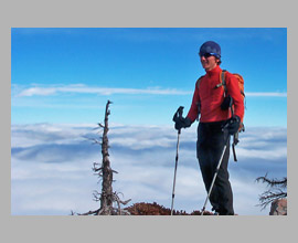 I ascended Mount Rundle last weekend (2949 m, elevation gain: 1570 m), a popular hike near Banff. The trail is easy to navigate and, due to its western exposure, free of snow relatively early in a season. Lower part is a comfortable path rising gently through forest, the upper section, on the other hand, is brutal. Hundreds of meters of steep climb on loose scree. Have fun.